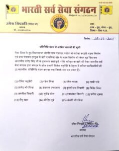 भारतीय सर्व सेवा संगठन के प्रदेश अध्यक्ष उमेश त्रिपाठी पिडिहा 15 सदस्यी प्रतिनिधिमंडल बनाया गया है।