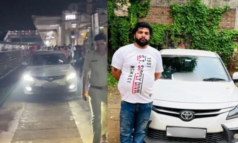 रेलवे प्लेटफॉर्म पर कार लेकर पहुंच गया युवक, ट्रेन के सामने गाड़ी की खड़ी, रेलवे पुलिस में हड़कंप