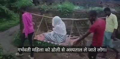 गर्भवती महिला को डोली में बैठाकर ले गए अस्पताल, सोशल मीडिया पर वीडियो हुआ वायरल