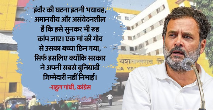 बता दें कि इंदौर के महाराजा यशवंतराव अस्पताल में मंगलवार को एक नवजात की तो बुधवार को दूसरे नवजात की मौत हो गई थी। कारण था चूहे द्वारा नवजातों को कुतर लेना। हालांकि डॉक्टर अब भी मामले में पर्दा डालने की कोशिश कर रहे हैं, उनका कहना है कि बच्चों की हालत पहले से ही खराब थी। उनका वजन कम और सर्जरी की गई थी। बुधवार देर रात सहायक अधीक्षक मुकेश जायसवाल, प्रभारी नर्सिंग अधिकारी प्रवीणा सिंह को निलंबित कर दिया गया है। इसके अलावा विभागाध्यक्ष डॉ. ब्रजेश लाहोटी को नोटिस दिया गया है। इधर मामला सामने आने के बाद कांग्रेस लगातार हमलावर है। अब लोकसभा में विपक्ष के नेता राहुल गांधी ने फेसबुक पर इसे लेकर लिखा है।